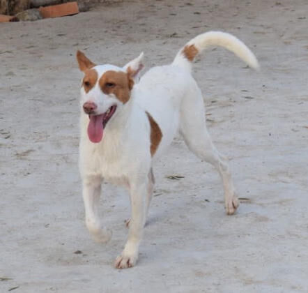 Der Rüde ist ein Podenco (Mischling), das sind Jagd- und Windhunde, als solche sind sie agil und wendig, haben viel Energie und die Nase gerne am Boden. Diese Rasse ist aber auch bekannt dafür leicht zu „überdrehen“, sein Mensch muss also ein Gespür dafür haben, wann genug gerannt ist und eine Pause eingelegt werden muss. Wer Lust hat auf ausgedehnte Spaziergänge oder sogar gezielt nach einem Jagdhund sucht, der wird mit dieser Rasse viel Freude haben.