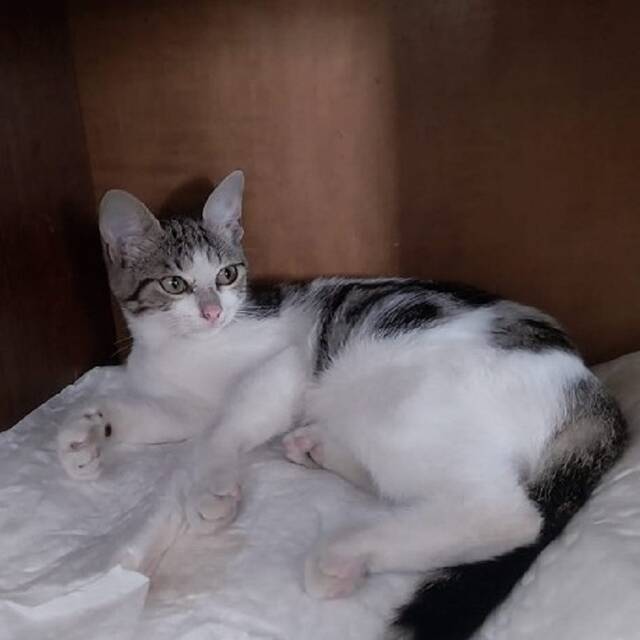 ca. 1.6.2025 | | Farbe: | weiß- grau gestromt | | Kastriert/Sterilisiert: | Nein | | Impfungen: | Ja | | MMK Test: | Nein | | | | | Interesse? | Zu den Kontaktdaten! | Charakter: Katzenverträglich: Ja wird als Zweitkatze vermittelt Hundeverträglich: Nicht bekannt Zu Kindern: Ja In 3 Worten Freundlich, zutraulich, verträglich
