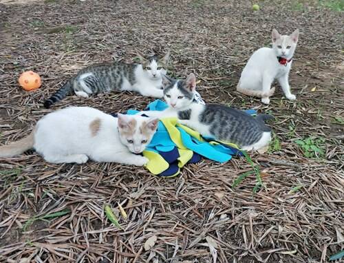 September 2025: Daphne, Dion, Dolce, Dario & Dodo wurden zusammen bei einer Tierfreundin am Feld ausgesetzt. Die 5 Katzenkinder sind alterstypisch ziemlich verspielt und sehr freundlich zum Menschen. Dario wiegt aktuell etwa 1,42kg. Wir suchen liebevolle Interessenten, damit die kleinen Racker bald ihre Koffer packen dürfen! Wünschenswert wäre ein Zuhause mit künftigem Freigang (nach Eingewöhnung und Kastration) bzw. Katzengesellschaft.