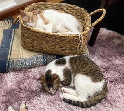 Da die beiden so lieb und aufgeschlossen sind, wäre eine etwas größere, soziale Katzengruppe ebenfalls denkbar. Vorhandene Katzen sollten allerdings in einem ähnlichen Alter und auch verspielt und aktiv sein, da sie sonst eventuell überfordert sein könnten.