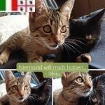 Vermittlungshilfe Silvio – wohin wird seine Reise gehen? Der bildhübsche kleine Tigerkater hatte einen schlechten Start ins Leben: Nachdem seine Mutter, eine herrenlose Straßenkatze, überfahren und getötet wurde, sah es sehr düster für Silvio und seine Schwesterchen Sole und Suvi aus. Glücklicherweise beobachteten eine Touristin und ihre Tochter das Geschehen und sicherten die drei. Aber wohin bloß mit den winzigen Kitten? Hilfe in der Not leistete unsere großartige Kooperationspartnerin Silvia: Sie nahm das Trio bei sich auf und pflegte es nicht nur gesund, sondern schenkte den Minis zudem ganz viel Liebe und Geborgenheit. Für Suvi konnten wir ein Zuhause auf Sardinien finden, aber für Silvio und Sole gab es leider nicht eine einzige Anfrage – dabei sind die beiden zuckersüß, verschmust und an das Zusammenleben mit Menschen gewöhnt... Silvio ist kittentypisch verspielt und sehr anhänglich – er gibt sogar Küsschen! Genau wie seine Schwester wäre er perfekt für eine Familie geeignet, selbst wenn diese noch nicht allzu katzenerfahren sein sollte. Gerne würde er mit seiner Schwester Sole, die er sehr liebt, in ein schönes Zuhause ziehen, aber wenn das nicht geht, braucht er doch auf jeden Fall die Nähe anderer Katzen im passenden Alter. Und natürlich möchte er nach der Eingewöhnung wieder Gras unter den Pfötchen spüren dürfen. Auf Dauer wird Silvio nicht bei seiner Pflegestelle bleiben können – möchtest Du ihm einen Platz in Deinem Heim und Deinem Herzen schenken? Dann melde Dich einfach unter ute.finkeldei(at)respektiere.com!. Gerne bringt das Kerlchen seine Schwester Sole oder ein anderes Kitten mit zu Dir.