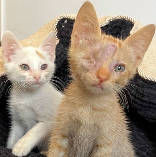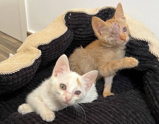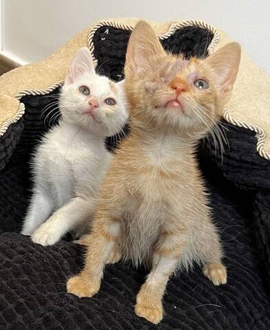 beide geb. 14.08.2025 | | Farbe: | Ragetti: weiß; Eboli: rot- getigert | | hundeverträglich: | Ja | | Krankheiten: | Ragetti: FIV positiv; Eboli: einäugig | | Patenschaft gesucht: | Möchten Sie mein Pate werden? | | | | | Interesse? | Zu den Kontaktdaten! | Charakter: Eboli einäugig, Ragetti evtl. FIV – positiv, verspielt, verschmust, neugierig, sozial, kennen Hunde
