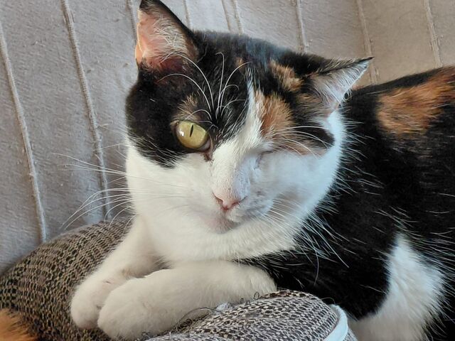 Ibar (geb. ca. 04/2022) wurde von einer ehrenamtlichen Helferin ANAAs gefunden und zum Tierheim gebracht, weil sie Probleme mit ihrem linken Auge hatte. Leider war Ibars Auge nicht zu retten, um Infektionen vorzubeugen wurde es entnommen und die Augenhöhle verschlossen. Für Ibar nichts neues, denn Sehvvermögen hatte sie auf dem Auge wohl schon lange nicht mehr. Da es aktuell keinen Platz für Ibar im Tierheim gab, nahm die Finderin sie freundlicherweise auf, bis im Tierheim ein Platz frei würde. Sie ist selber eine Pflegestelle von ANAA, jedoch mehr als ausgelastet mit den vorhandenen Tieren – auch platzmäßig.