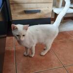 Flöckchen ist etwas zurückhaltender, aber nicht weniger liebevoll. Auch sie ließ sich schon nach wenigen Tagen problemlos streicheln und zeigt inzwischen deutlich, wie sehr sie es genießen kann. Am Anfang brauchte sie etwas mehr Ruhe und eine einladende Stimme, um Vertrauen zu fassen – heute bewegt sie sich offen im Raum und kommt in entspannten Momenten von selbst auf einen zu. Ihre hellblauen, huskyähnlichen Augen und der etwas dunklere Ohransatz unterscheiden sie äußerlich von Amaya, doch vor allem ihr sanftes, ruhiges Wesen macht sie besonders.