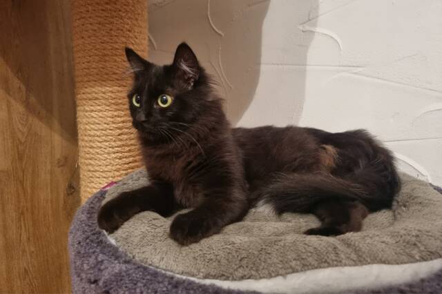 Name: Trippi Geboren: ca. 01.01.2025 Alter: ca. 1 Jahr Rasse: Norwegische Waldkatzen Mischling Geschlecht: weiblich Kastriert: ja Geimpft: Katzenschnupfen / -seuche, Tollwut Gechippt: ja Farbe: schwarz Katzenaids (FIV): negativ Leukose (FeLV): negativ Krankheiten: keine bekannt Handicap: dreibeinig Katzenverträglichkeit: ja Hundeverträglichkeit: unbekannt Kinder: ja Aufenthaltsort: 95463 Bindlach