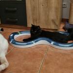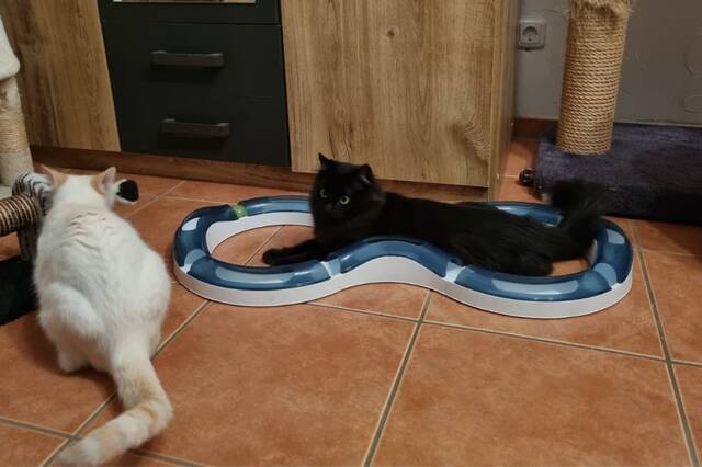 Trippi spielt unglaublich gern – besonders mit Bällen, der Kugelbahn oder beim Verstecken in Einkaufstaschen und unter Decken. Sie liebt es außerdem, mit zwei der anderen Pflegekatzen durchs Zimmer zu flitzen. Manchmal überschätzt sie sich dabei etwas und rutscht über den Boden oder kippt beim Stehen vor lauter Begeisterung beim Streicheln einfach um – aber nie so, dass es ihr schaden würde. Sie macht daraus lieber ein kleines Spiel und steht fröhlich wieder auf.