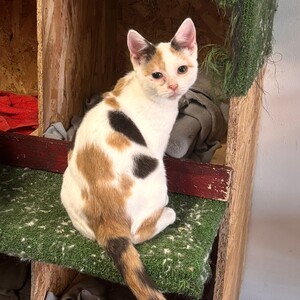 Mimi hat längeres, üppiges Fell und ist wunderschön dreifarbig. Sie ist außerdem sehr verspielt und liebt es, ihre kleine Schwester Minnie zu verwöhnen und zu knuddeln.