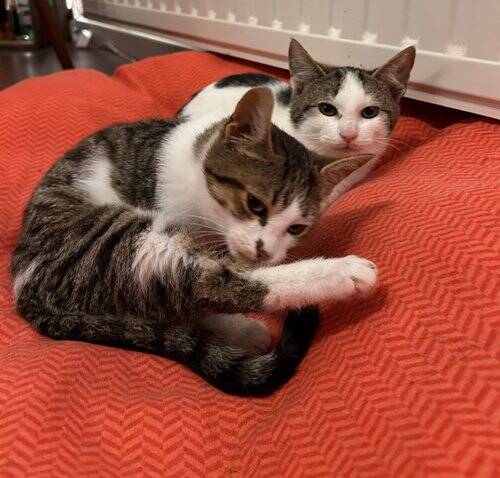 Die 4 Katzenkinder sind alterstypisch ziemlich verspielt. Milo wiegt aktuell etwa 1,92kg und ist super freundlich zum Menschen.