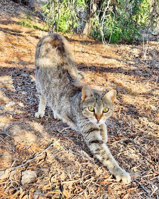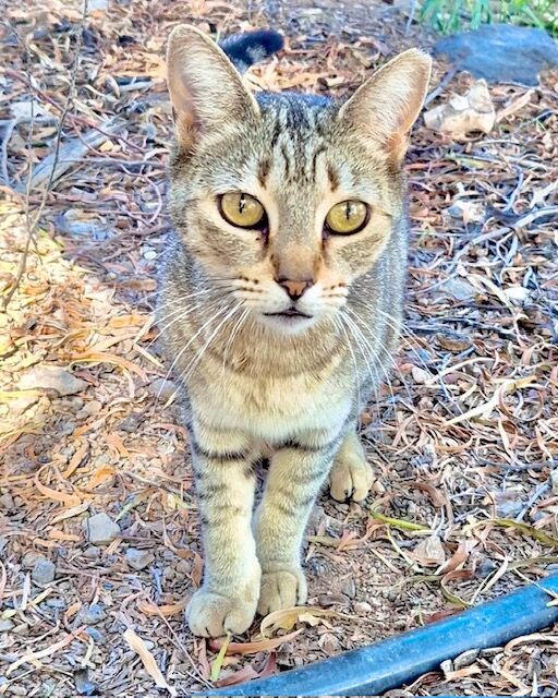 Still, vorsichtig und mit wachen Augen beobachtet sie alles aus sicherer Entfernung - Tigri, ein zartes Grautiger-Mädchen, das von Anfang an zur Katzenkolonie in La Pared gehört.