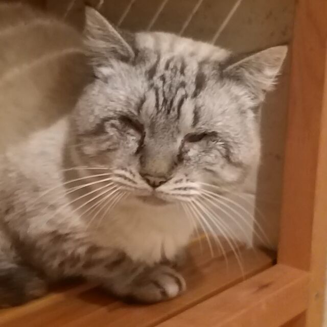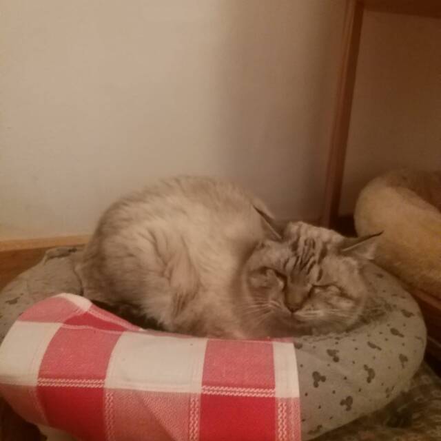 Charakter: FIV positiv, blind, hundeverträglich, sozial zu Artgenossen