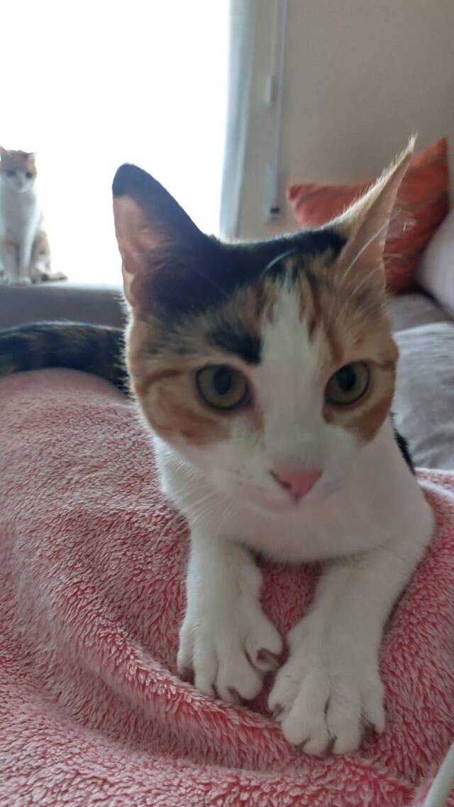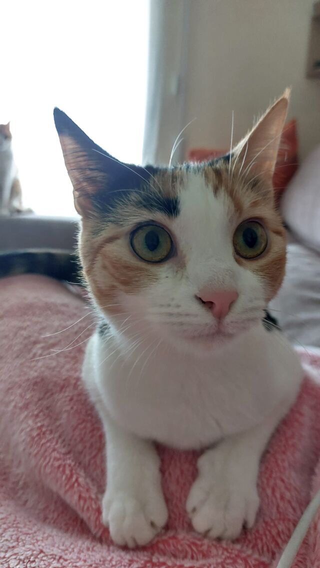 „Sie ist eine Katze, die den Kontakt zu Menschen sucht, aber auch gerne ihre Ruhe hat und sich vom Rest zurückzieht. Sobald man sie krault, knetet sie den Boden, schnurrt und hebt ihr Hinterteil so sehr, dass sie sogar aus dem Gleichgewicht gerät. Sie ist eine liebevolle Katze, die einem mit ihrer Zärtlichkeit das Herz schmelzen lässt. Sie ist nicht aufdringlich, aber sie mag es, wenn man in ihrer Nähe ist. Sie ist sehr ruhig, wenn sie spielen will, spielt sie, aber sie hat eine für ihr Alter sehr ruhige Energie. Mit Hunden versteht sie sich hervorragend, sie sucht sie nicht, aber wenn sie in der Nähe sind, interagiert sie mit ihnen und akzeptiert, dass sie in ihren Raum eindringen, ohne sich darüber zu ärgern. Ich habe sie noch nie wegen irgendetwas fauchen hören, sie ist sehr brav und lässt sich ohne Probleme hochheben. Sie akzeptiert Kinder sehr gut, lässt sich von ihnen hochheben und macht keine Anstalten, ihnen etwas anzutun.“