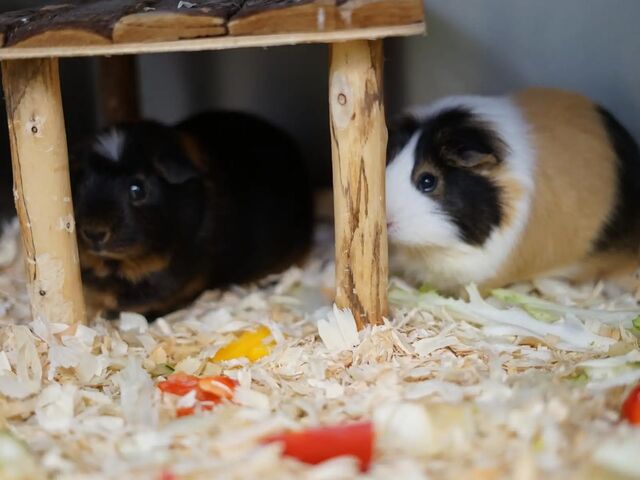 Verschiedene Rückzugsmöglichkeiten wie Schlafhöhlen sowie Strukturelemente zur Unterhaltung dürfen nicht fehlen. Da es sich bei Meerschweinchen nicht um Kuschel-, sondern Beobachtungstiere handelt, verbringen sie lieber Zeit mit ihren Artgenossen als mit uns Menschen.