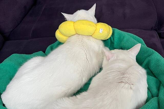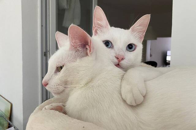 Wie bin ich? Moon und Bowie sind zwei wunderschöne Siam-Mischlinge mit ganz besonderem Charme. Moon hat leuchtend blaue Augen, Bowie trägt ein grünes und ein blaues Auge – ein echter Hingucker. Beide sind sehr menschenbezogen und haben ein starkes Bedürfnis nach Nähe. Sie kuscheln innig miteinander und mit ihren Menschen. Kaum setzt man sich aufs Sofa, ist Bowie als Erster zur Stelle, Moon folgt kurze Zeit später. Auch nachts schlafen sie – wenn möglich – immer in der Nähe ihrer Bezugspersonen und suchen Körperkontakt. Obwohl sie Brüder sind, könnten ihre Charaktere kaum unterschiedlicher sein: Bowie ist der gemütliche Genießer. Er schläft viel, liebt Kuschelstunden und liegt für sein Leben gern in der Sonne. Er ist sensibel und zieht sich bei Kummer eher zurück. Moon dagegen ist ein kleiner Hund im Katzenkörper. Hört er das Garagentor, steht er sofort am Fenster, und an der Tür begrüßt er freudig seine Familie. Er liebt es, Bälle zu apportieren, spielt ausdauernd und braucht viel Beschäftigung. Da Moon nach wie vor zu stressbedingter Dermatitis am Hals neigt, trägt er ein Schweißband aus dünner Baumwolle oder einen weichen Kragen. Damit kommt er sehr gut zurecht – es hilft ihm zuverlässig, sich nicht aufzukratzen.