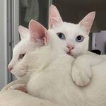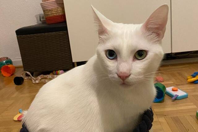 Name: Bowie Moon Geboren: ca. 2018 Alter: ca. 8 Jahre Rasse: Siammischling Geschlecht: männlich Kastriert: ja Geimpft: Katzenschnupfen, -seuche, Tollwut Gechippt: ja Farbe: weiß Katzenaids (FIV): negativ Leukose (FeLV): negativ Krankheiten: keine bekannt Dermatitis Handicap: nein Katzenverträglichkeit: ja Hundeverträglichkeit: unbekannt Kinder: ab 12 Jahre Aufenthaltsort: Dortmund
