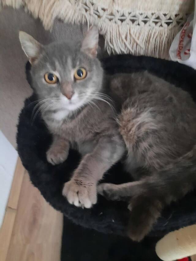ca. 11/2024 | | Farbe: | grau getigert, weißer Brustfleck/ blue-tabby/mc. white | | Kastriert/Sterilisiert: | Ja | | Impfungen: | Ja | | MMK Test: | Ja | | | | | Interesse? | Zu den Kontaktdaten! | Charakter: siehe Beschreibung