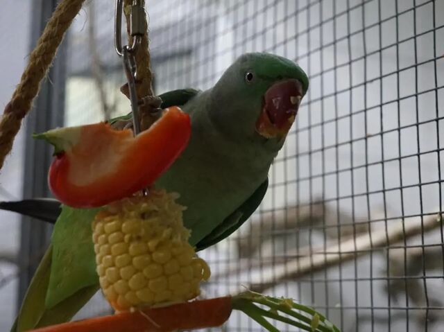Die Sittich-Dame wünscht sich mehr als alles andere ein artgemäßes Zuhause mit mindestens einem Partnertier und einer großen Voliere mit mehreren Rückzugs-, Sitz- und Klettermöglichkeiten. Auch täglicher Freiflug ist ein absoluter Lebenstraum der Vielfliegerin.