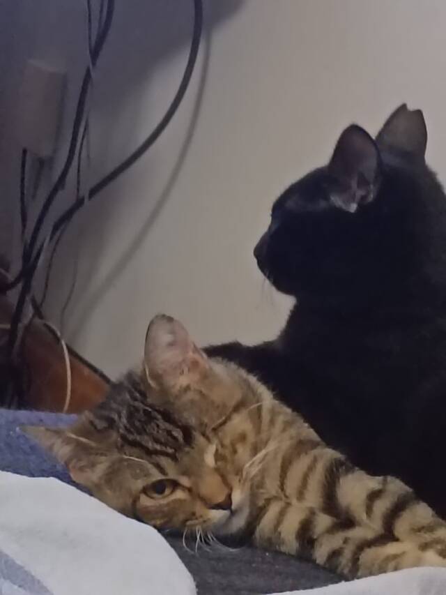 Coro durfte, nachdem er wieder selbstständig fressen konnte, auf eine Pflegestelle in Spanien umziehen. Dort zeigte er sich unruhig, er miaute sehr viel und benutzte das Katzenklo selten. Ständig suchte er nach Aufmerksamkeit. Damit er nicht so allein war, zog Kater Ink (geb. 05/2025) auf der Pflegestelle mit ein. Damit kam Coro zur Ruhe, das Miauen hörte auf, aber das Katzenklo nutzt er trotzdem kaum, so dass wir vermuten, dass er es einfach nicht versteht. Er möchte immer in Gesellschaft mit Ink oder einem Menschen sein. Am liebsten liegt er bei Ink oder der Pflegemama. Für ein Katzenkind ist Coro sehr ruhig was Bewegung betrifft, er spielt auch nicht. Vom körperlichen ist eher für sein Alter sehr klein. Zudem wird tierärztlicherseite vermutet, dass er taub ist, das ist jedoch noch nicht ganz gesichert.