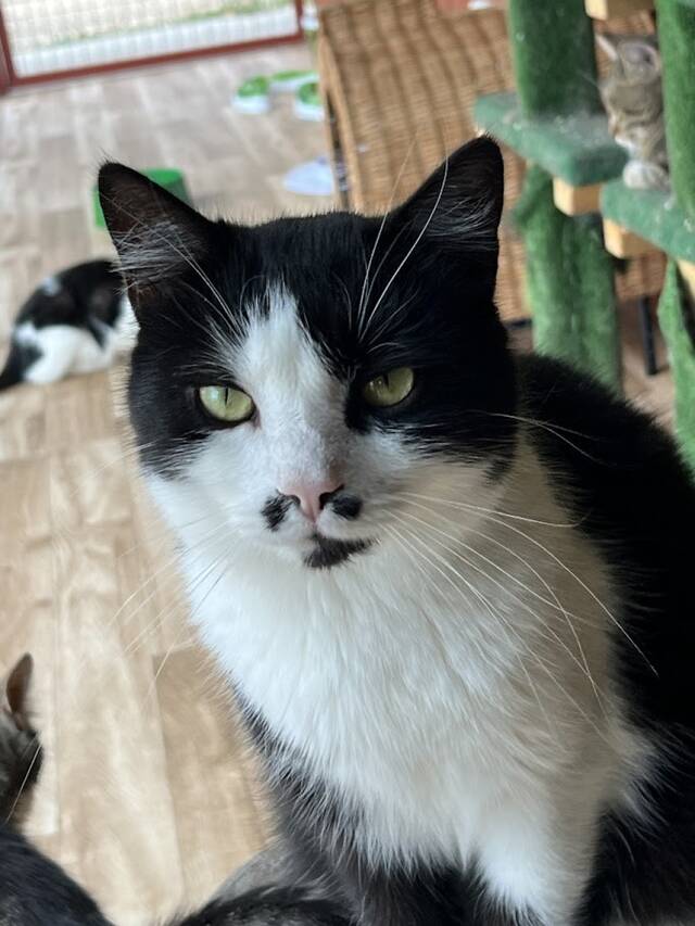 Gustavo ist Herr Schnurrbart. Er hat ein sehr einzigartiges Aussehen mit einer leichten Langhaar-Attitüde. Er ist der aktivste des Trios, immer bereit zum Spielen. Er liebt es, Käfern und Schmetterlingen nachzulaufen. Er ist eine fröhliche und lustige Katze. Wir empfehlen ihn einer Familie, die Zeit hat, mit ihm zu spielen, und wenn Sie einen Garten mit einem katzensicheren Zaun hätten, wäre das das Schönste! Er kennt auch Hunde.