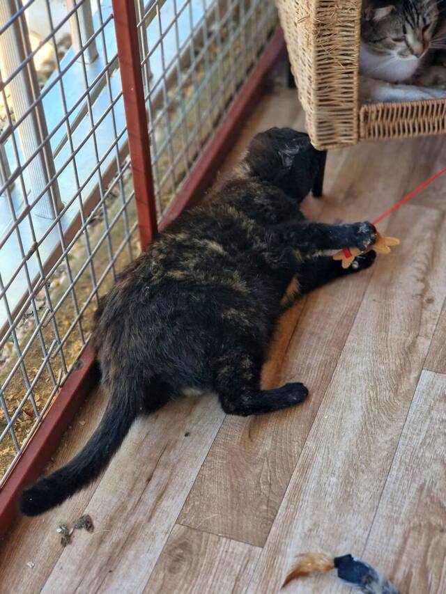 Penelope ist sehr verspielt und eine ganz Süße. Sie hat Angst vor plötzlichen Bewegungen, möglicherweise wurde sie misshandelt. Trotzdem ist sie gegenüber ihr bekannten Menschen vertrauensvoll. Sobald sie gestreichelt wird hört man sie leise schnurren. Wer Penelope adoptiert muss darauf vorbereitet sein, dass Penelope etwas Zeit braucht, um sich einzuleben und sich so zeigt wie hier beschrieben.
