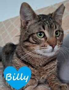 März 2026: Billy wurde von einer Tierfreundin im Alter von ca. 4 Monaten am Flughafen Korfus gefunden und zu seiner eigenen Sicherheit von ihr aufgenommen. Mittlerweile ist Billy ca. ein Jahr alt. Er hat sich zu einem super freundlichen, verspielten jungen Kater entwickelt, der auch mit anderen Katzen sehr gut zurechtkommt. Billy wiegt aktuell ca. 5 Kilogramm.