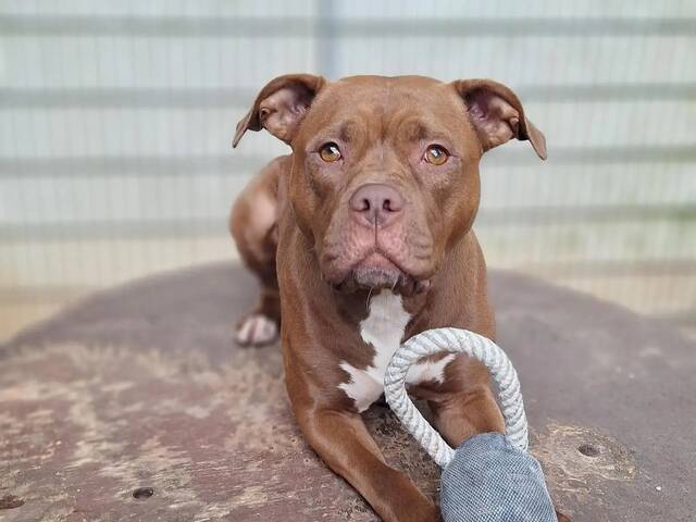 Joy kam ursprünglich als Fundhund zu uns ins Tierheim. Aufgrund ihrer Rassezugehörigkeit wurde sie jedoch kurz danach behördlich sichergestellt. Inzwischen hat Joy ihren Wesenstest bestanden und ist nun bereit für ein eigenes Zuhause.