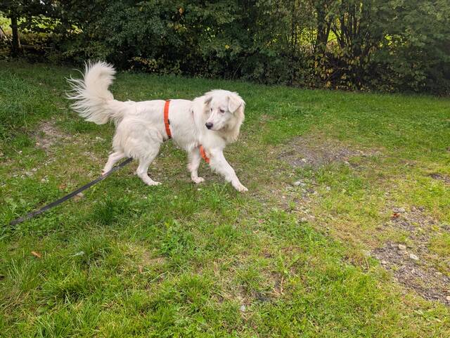 Charakter: Arik hat sich sehr gut bei uns eingelebt, dass er nichts hört, haben wir komplett vergessen. Er reagiert sehr gut auf Hand- und Körpersprache und ist sehr gelehrig. Dass er alles Fressbare liebt, hilft dabei sehr. Er läuft gut an der Leine, hat keinerlei Probleme mit Hundebegegnungen an der Leine, kennt Katzen und apportiert liebend gern alles, was zu tragen ist.