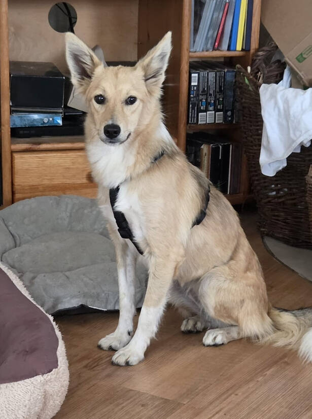 Charakter: sehr freundlich, lieb und nett, läuft schön an der Leine, stubenrein, verträglich mit Artgenossen und Katzen