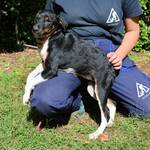 Für eine ordentliche Vorstellung haben wir uns gegenseitig interviewt, wie wir aussehen. Also, ich bin die Zelia. Ich habe einen schwarzen Rücken und Popo und ein weißes Lätzchen und Bäuchlein. Meine Beine sind auch weiß und guck mal, wie hübsch meine zwei braunen Flecken über den Augen sind. Das ist ganz Natur. Ich bin immer fröhlich und für jeden Spaß zu haben. Ich liebe Kuscheln mit meiner Schwester und meiner Mama und an Menschen muss ich mich erst mal gewöhnen. Aber wenn die wirklich so tolle Sachen mit mir machen, dann sollen sie schnell kommen. Ich soll ausrichten, am schnellsten geht es, wenn sie meine Vermittlerin anrufen.