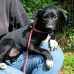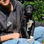 Für eine ordentliche Vorstellung haben wir uns gegenseitig interviewt, wie wir aussehen. Also, ich bin die Zena. Ich bin fast schwarz und habe ein weißes Lätzchen und weiße Pfötchen. Ich bin immer fröhlich und für jeden Spaß zu haben. Ich liebe Kuscheln mit meiner Schwester und meiner Mama und an Menschen muss ich mich erst mal gewöhnen. Aber wenn die wirklich so tolle Sachen mit mir machen, dann sollen sie schnell kommen. Ich soll ausrichten, am schnellsten geht es, wenn sie meine Vermittlerin anrufen.