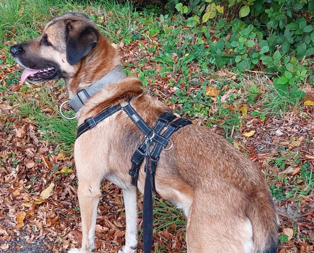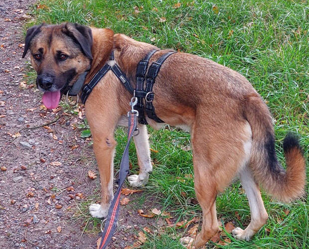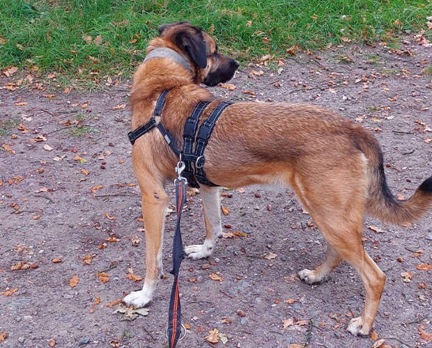 An der Leine sind Hundebegegnungen kein Problem und er läuft brav weiter mit, selbst wenn er angepöbelt wird.