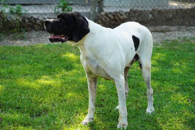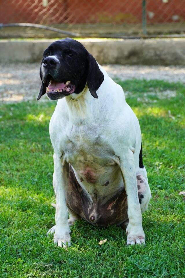 Mit seinen 60 cm Größe und auch einem derzeitigen Gewicht von 36 Kilogramm ist Amleto schon eine Erscheinung und wirkt nicht unbedingt Pointer typisch sportlich. Doch das erleben wir immer wieder: Die privaten Tierschützer haben einfach keine Zeit, sich mit „íhren“ Hunden zu beschäftigen oder sie auch nur aus den Zwingern zu lassen und dann sollen sie wenigstens genug Futter bekommen. Wir denken, mit etwas reduzierter Kost und ein wenig mehr Bewegung wird der „Kleine“ schon wieder eine Taille bekommen.