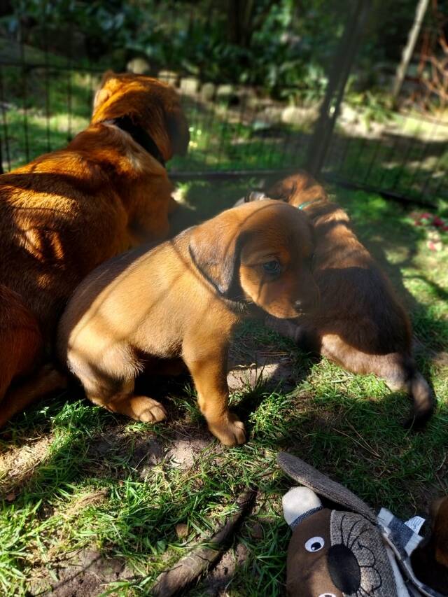 Die drei Erstgeborenen erinnern mit ihren längeren Beinchen, ihrem kompakteren Körperbau und glattem Fell an den Dackeltyp – vermutlich hat hier ein anderer Vater seine Spuren hinterlassen als bei den vier später Geborenen, die kürzere Beinchen, einen längeren Körper und längeres Fell haben. Jeder von ihnen ist einzigartig. Und doch sind sie eins: neugierig, verspielt, lebenshungrig.
