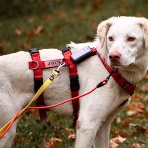 Das Anziehen von Halsband, Geschirr oder Leuchtband klappt mittlerweile wunderbar. Anfangs saß er dabei ruhig in der Ecke und hat einfach ausgehalten, was passiert. Heute kommt er sogar freiwillig mit in den Raum, wenn er merkt, dass es Zeit für den Spaziergang ist, und lässt sich das Geschirr im Stehen wieder ausziehen – ein kleiner Moment, der zeigt, wie sehr sein Vertrauen wächst. Pfötchen abtrocknen? Kein Problem mehr. Laute Geräusche wie Kirchenglocken, Baustellen oder Sirenen nimmt er nur noch kurz zur Kenntnis – ein kurzer Blick, ein kurzes Denken, und weiter geht’s.