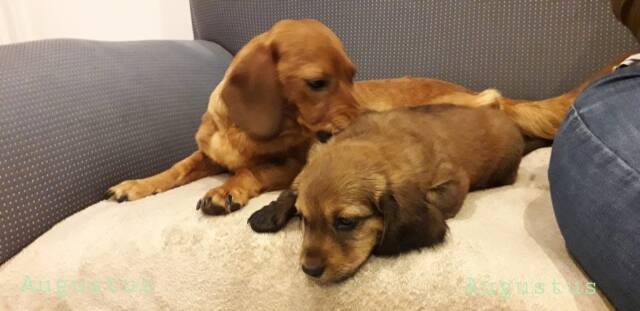 Die drei Erstgeborenen erinnern mit ihren längeren Beinchen, ihrem kompakteren Körperbau und glattem Fell an den Dackeltyp – vermutlich hat hier ein anderer Vater seine Spuren hinterlassen als bei den vier später Geborenen, die kürzere Beinchen, einen längeren Körper und längeres Fell haben. Jeder von ihnen ist einzigartig. Und doch sind sie eins: neugierig, verspielt, lebenshungrig.