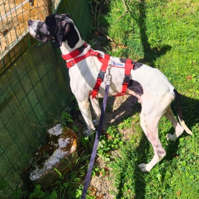 Dalton ist auf der Suche nach aktiven Menschen, die gerne und viel draußen in der Natur unterwegs sind und auch ein Interesse an den Besonderheiten der sehr alten Jagdhundrasse der Pointer haben. So gilt der Pointer in seiner jagdlichen Verwendung, als ein „Vorstehhund“, der dem Jäger das Wild im Dickicht anzeigt. Dieses besondere Talent wird natürlich auch Dalton in sich tragen und dadurch Ihnen liebe Leserinnen und Leser viele Dinge anzeigen wollen, die der sanfte Rüde sehr spannend findet. Freuen Sie sich auf die gemeinsamen Erlebnisse und Beobachtungen in Wald, Flur und am Wasser mit dem sportlichen Dalton. Mit ihrer liebevollen Anleitung, guter geistiger Auslastung und einem sportlichen Hobby wird Dalton gut die notwendigen Regeln in einem Menschenhaushalt lernen wollen und ein sanfter, freundlicher Begleiter werden.