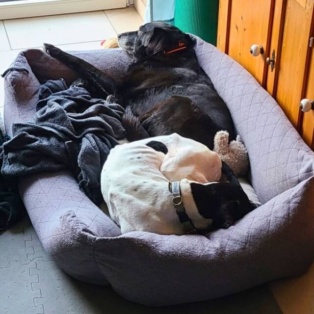Trotz seiner Power ist Dalton zuhause ein riesiger Schmusefreund. Er kuschelt ausdauernd und mit voller Hingabe – Nähe und Zuwendung sind ihm unglaublich wichtig. Im Büro zeigt er sich von seiner besten Seite: Nach etwas Eingewöhnung kann er dort inzwischen gut entspannen und döst zufrieden neben seinem Menschen.