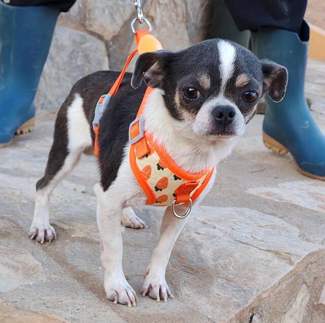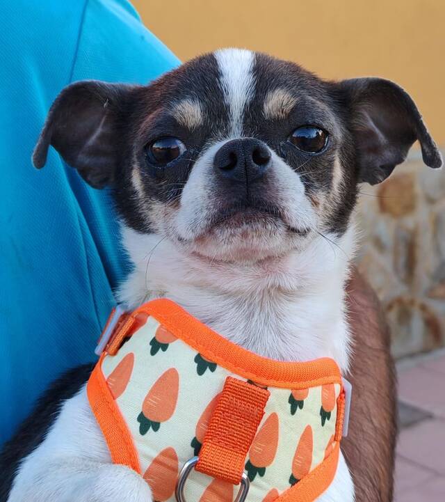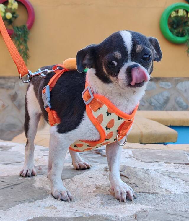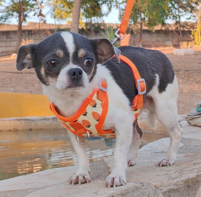 Beschreibung: Geboren: ca. April 2024 Rasse: Chihuahua Größe/Gewicht: ca. 23 cm Schulterhöhe bei 1,9 kg Standort: Auffangstation Linares/Südspanien Kastriert, gechipt mit EU Ausweis, geimpft und negativ auf Mittelmeerkrankheiten getestet
