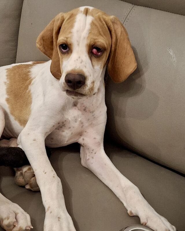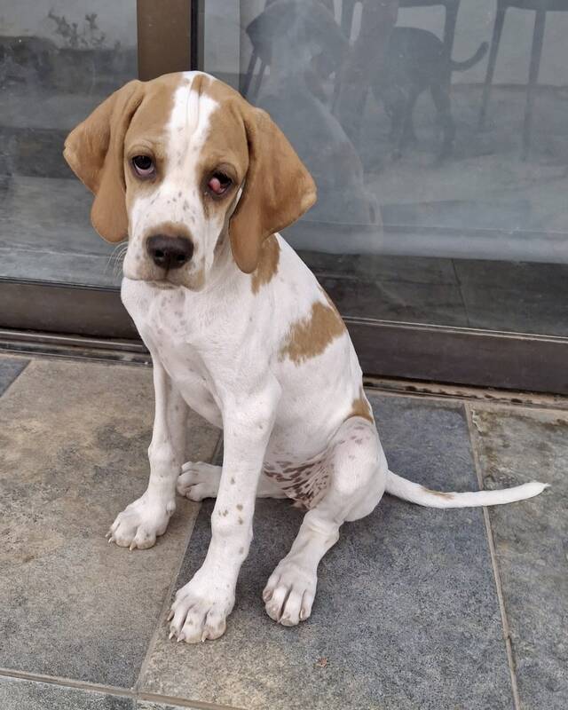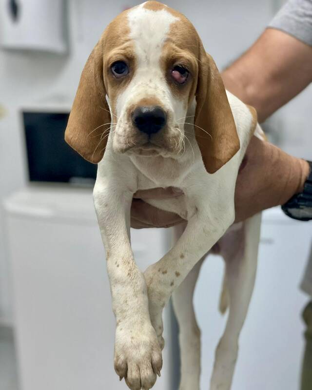 Dort stellte sich heraus: Sunny leidet an einem „Cherry Eye“– einer schmerzhaften Vorwölbung der Nickhaut. Unbehandelt kann dies zu dauerhaften Augenproblemen führen. Vermutlich war genau das der Grund, warum sie von einem Jäger herzlos ausgesetzt wurde.