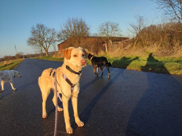 Mike durfte Mitte Dezember, knapp vor seinem ersten Geburtstag, sein Köfferchen packen und die Alpen in Richtung Norden überqueren. Er lebt nun auf einer Pflegestelle in 38112 Braunschweig. Mike ist ein zugewandter und freundlicher Youngster, der natürlich noch einiges zu lernen hat. In Italien ist er mit einer Schwester, auf einer Pflegestelle aufgewachsen, hat dort schon erste Erfahrungen mit dem Leben in einer Familie (italian style) machen können. Auf seiner deutschen Pflegestelle lebt er mit einem Rüden, einer Hündin und Katzen friedlich zusammen. Kinder kennt er ebenfalls. Mike läuft bereits ganz manierlich an der Leine, seine Geschäfte erledigt er draußen, obwohl Spazierengehen eine gänzlich neue Erfahrung für ihn sein dürfte. Auf seinen begleiteten Exkursionen in 'neue Welten' lernt Mike gerade unendlich viele spannende Dinge kennen, denen er sich grundsätzlich unaufgeregt, aber mit angemessener Vorsicht nähert,- z.B. Fahrrädern, Autos und großen fremden Hunden...... Jederzeit Schutz und Sicherheit vermittelnde Menschen, an deren sicherer Seite Mike 'step by step' er-leben kann wie ein familienhundliches Dasein funktioniert und gern auch ein netter, familiär erfahrener Hundekumpel wären jetzt genau die richtige Perspektive für den knuffigen Hundling. *****************************************************************