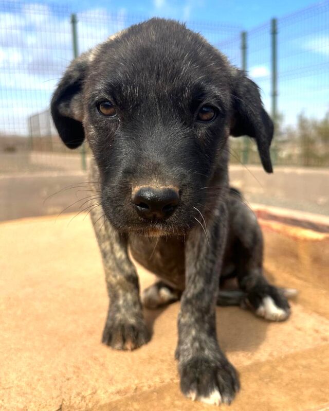 Aufgrund seines äußeren Erscheinungsbildes und der Fellzeichnung gehen wir davon aus, dass es sich bei den Welpen um Bardino-Mischlinge handelt – eine genaue Bestätigung liegt leider nicht vor. Bardinos gehören zu den Hütehunden der Kanaren und wurden dort als Hüte-, Wach- und Begleithunde eingesetzt. Dieser ausgeprägte Schutztrieb sollte bei der Adoption berücksichtigt und nicht unterschätzt werden. Hat man jedoch einmal das Vertrauen und die Liebe eines Bardinos gewonnen, erhält man einen treuen und loyalen Freund fürs Leben.