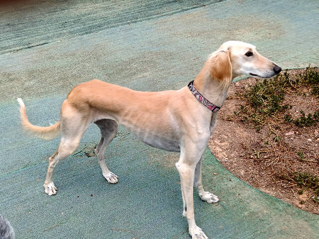 Rasse: Saluki Alter: geb. 04.08.2021 Geschlecht: weiblich Farbe: beige Schulterhöhe: 62 cm Schnauze bis Schwanzansatz: 97cm Brustumfang: 68 cm Halsweite: 36cm Gewicht: 21 kg Kastriert: ja Chip: ja Geimpft und entwurmt: ja Charakter: ruhig, sehr lieb, friedlich, anhänglich,bewegungsfreudig