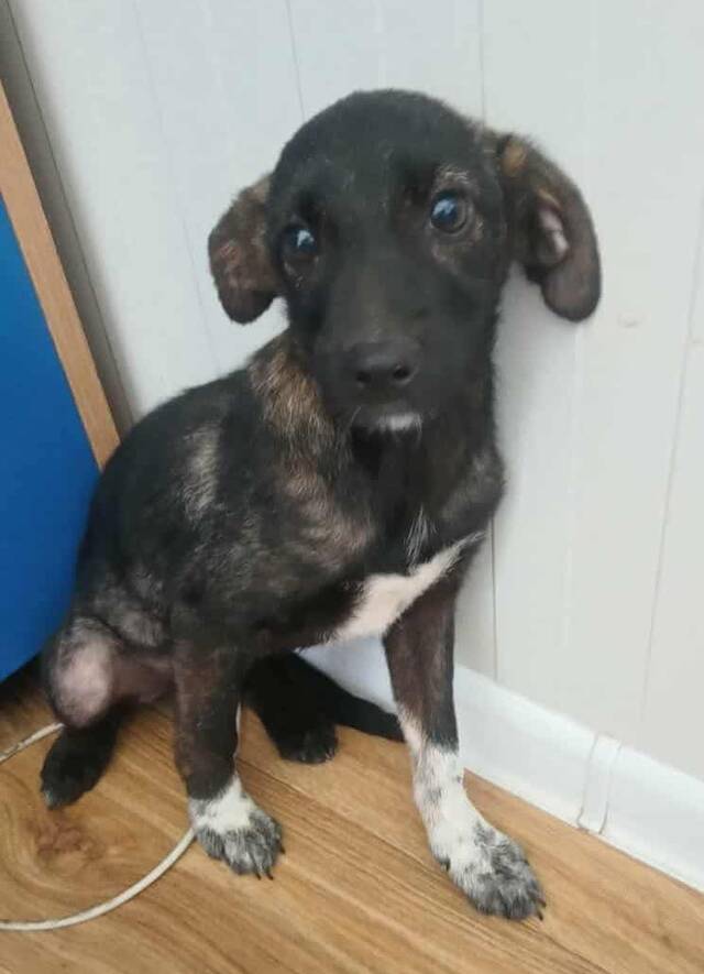 Die kleine Berta wurde zusammen mit ihren Geschwister gefunden – alleine ohne ihre Mama. Sie mussten schon etwas länger sich selbst überlassen gewesen sein, denn bei Berta waren bereits Hautprobleme sichtbar. Sie wurde daraufhin behandelt und zunächst von anderen Hunden sowie auch vom direkten Kontakt zu Menschen getrennt.