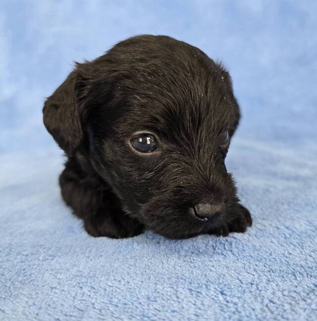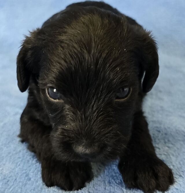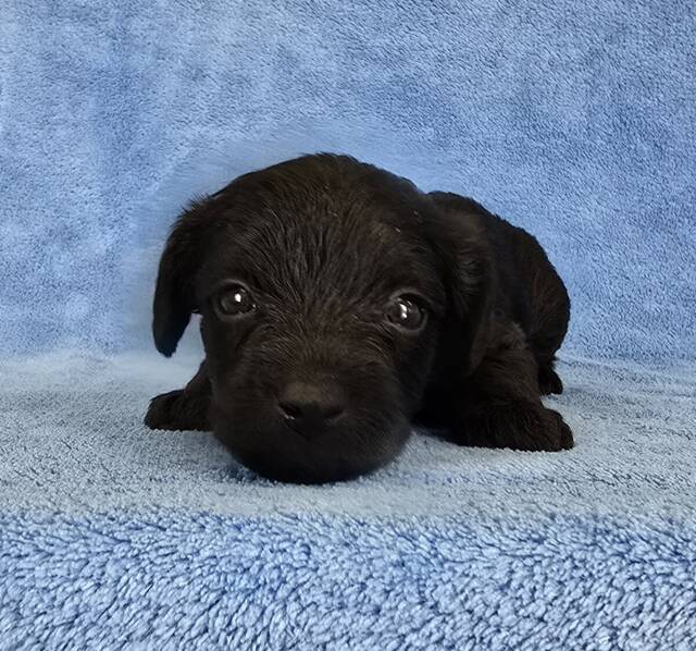 Sie sind jetzt typisch verspielt, neugierig, freundlich und voller Lebensfreude. Sie genießen das Leben, fressen gut, tollen miteinander herum und lernen jeden Tag etwas Neues. Ihre Mutter Primrose ist eine kleine Hündin, möglicherweise ein Dackelmix, daher gehen wir davon aus, dass auch ihre Welpen eher klein bleiben werden.
