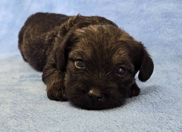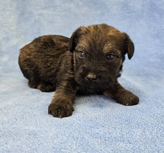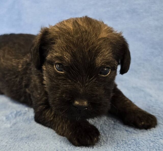 Sie sind jetzt typisch verspielt, neugierig, freundlich und voller Lebensfreude. Sie genießen das Leben, fressen gut, tollen miteinander herum und lernen jeden Tag etwas Neues. Ihre Mutter Primrose ist eine kleine Hündin, möglicherweise ein Dackelmix, daher gehen wir davon aus, dass auch ihre Welpen eher klein bleiben werden.