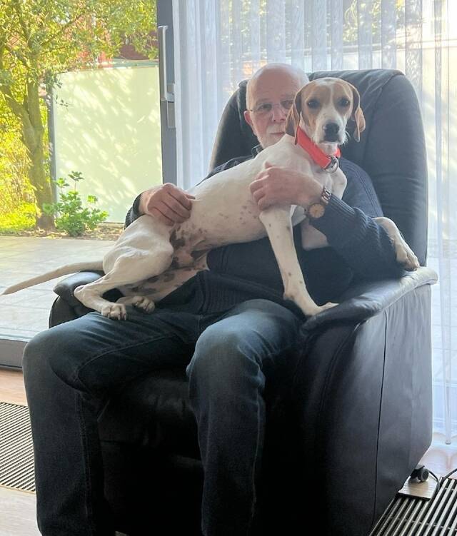 Nicht nur zu Vier- sondern auch zu Zweibeiner ist der Pointer-Rüde sehr freundlich, selbst zu Fremden.