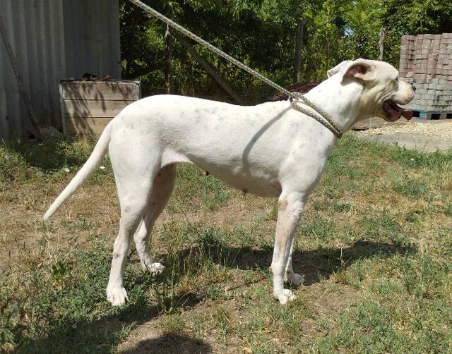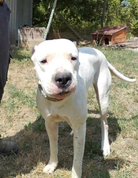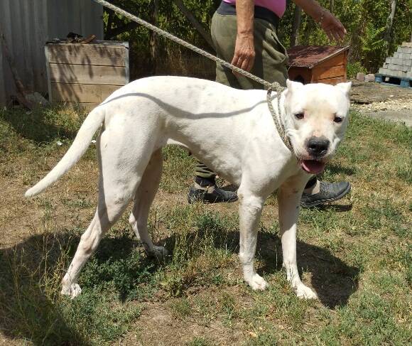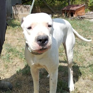 Die schöne Pandorra ist eine ganz tolle wohl reinrassige Dogo Argentino Hündin. In vielen Bundesländern in Deutschland ist sie auf der Rasseliste Klasse 2. Wir dürfen sie einführen, sie muss aber nach einiger Zeit je nach Bundesland einen Wesenstest bestehen. Teilweise kostet sie auch mehr bei der Versicherung. Das sollten Sie vor einer Bewerbung berücksichtigen und sich informieren. Pandorra ist eine sehr liebe , gelassene Hündin. Sie verträgt sich mit Rüden und mit Hündinnen gleichermaßen. Pandorra läuft wunderbar an der Leine. Wir verstehen nicht, warum diese tolle Hündin abgegeben wurde. Einen Katzentest können wir gern anfordern.