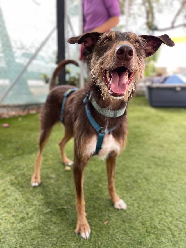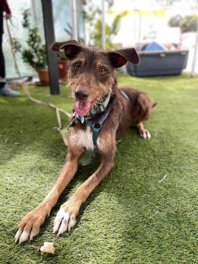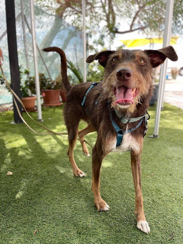 Beschreibung: Thorpy (*ca. 02/2021, ca. 60 cm) ist ein wunderschöner, schokobrauner, langhaariger Podenco-Mix-Boy, der zusammen mit seinen drei Kumpels von einem Jäger ausgesetzt wurde. So kam Thorpy Mitte Juli 2025 in unser spanisches Partnertierheim TripleA. Anfangs noch ziemlich gestresst, merkte er aber sehr schnell, dass er im Tierheim nun in Sicherheit war und entspannte sich. Und zum Vorschein kam ein absolut lustiger, super sozialer und menschenbezogener Podi, in den sich jeder, der mit ihm zu tun hat, sofort verliebt.