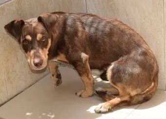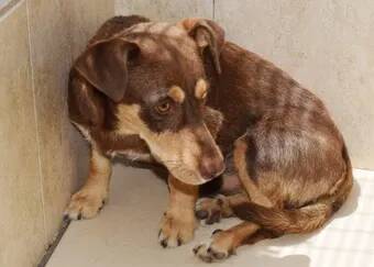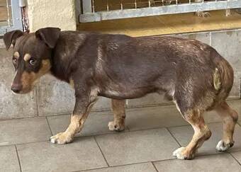 STITCK wurde in Torredelcampo aufgegriffen, nachdem er wochenlang allein durch die Straßen streifte. Anfangs war er scheu und ließ sich nicht anfassen – doch zum Glück gewann eine liebevolle Helferin sein Vertrauen und brachte ihn in unser Partnertierheim.