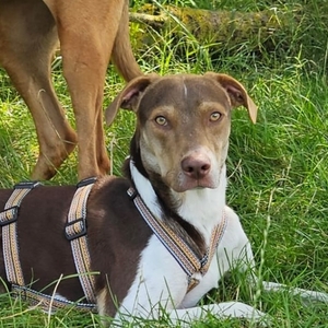 Pongo, ein junger Rüde, gerade 1 Jahre alt – verunsichert und vorsichtig.