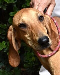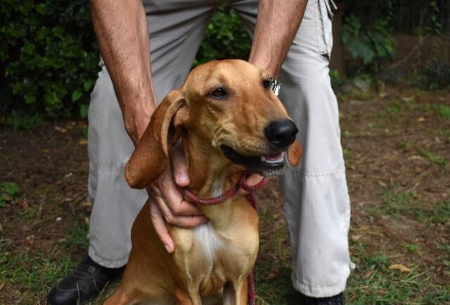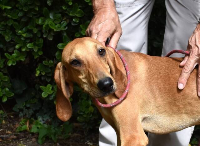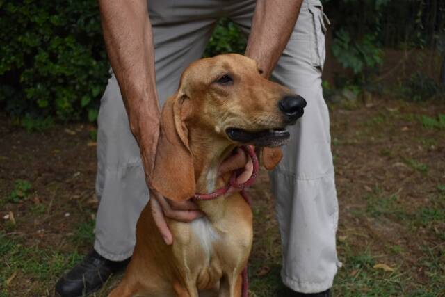 Als die Tierschützer kommen und Myles aus der Zelle holen, wirkt er zuerst verunsichert. Kein Wunder – raus aus der Zelle, zurück bei all den Gerüchen, die draußen auf ihn warten. Er ist ein Jagdhund und seine Nase durfte in den letzten Wochen nicht zum Einsatz kommen. Dennoch fasst er schnell Vertrauen zu den fremden Menschen, zeigt sich an ihnen interessiert und lässt sich problemlos anfassen. Auch geht er gut an der Leine.